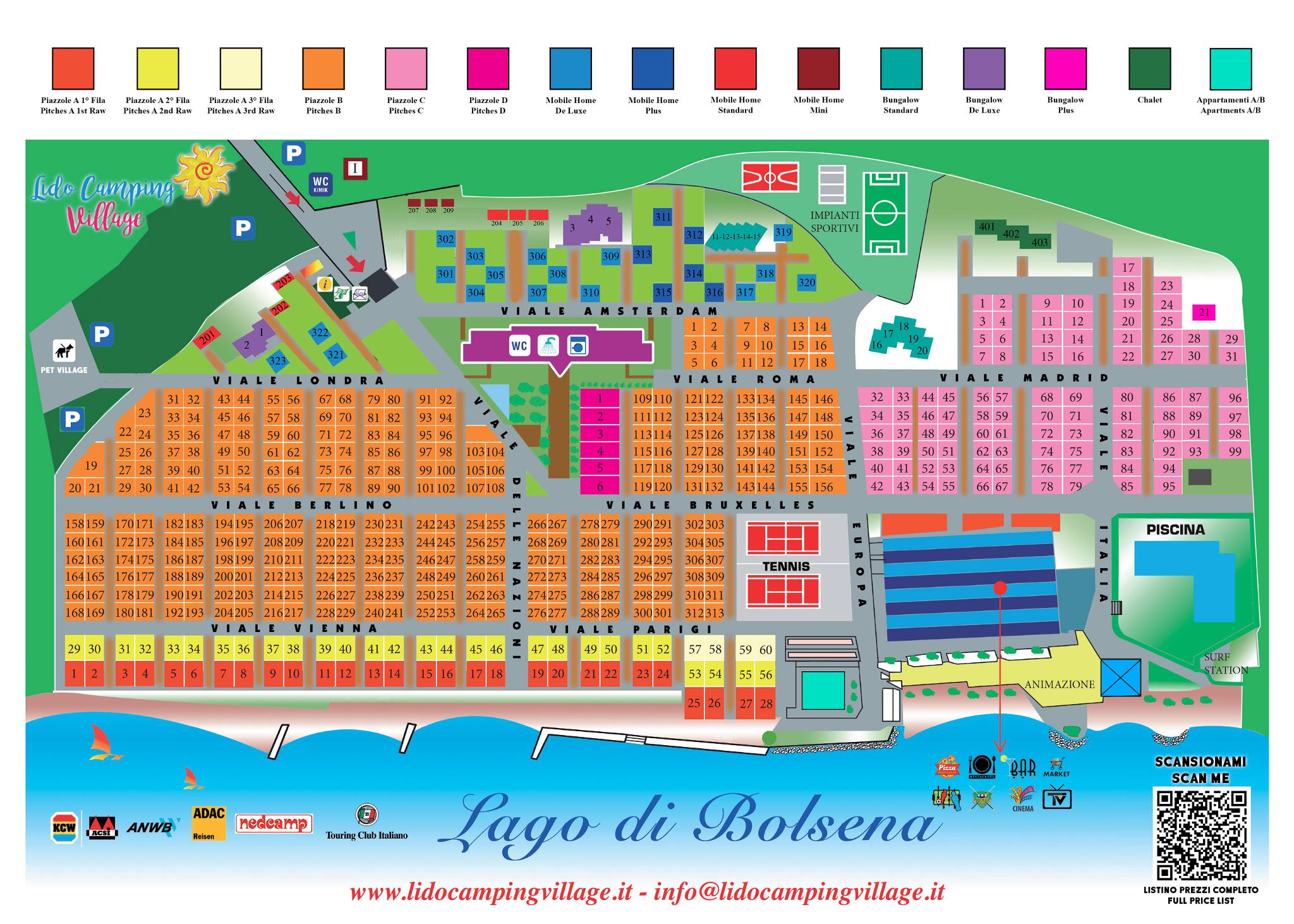 In piazzola i prezzi comprendono l'occupazione della piazzola, il numero di ospiti per equipaggio e la corrente elettrica. Potenza: 660 WPiazzole di dimensioni 7mt x 10,5 mt, circa 73/75 metri quadrati.Il caravan/roulotte va posizionato obbligatoriamente col lato corto verso il Lago.Posto riservato in fase di prenotazione.